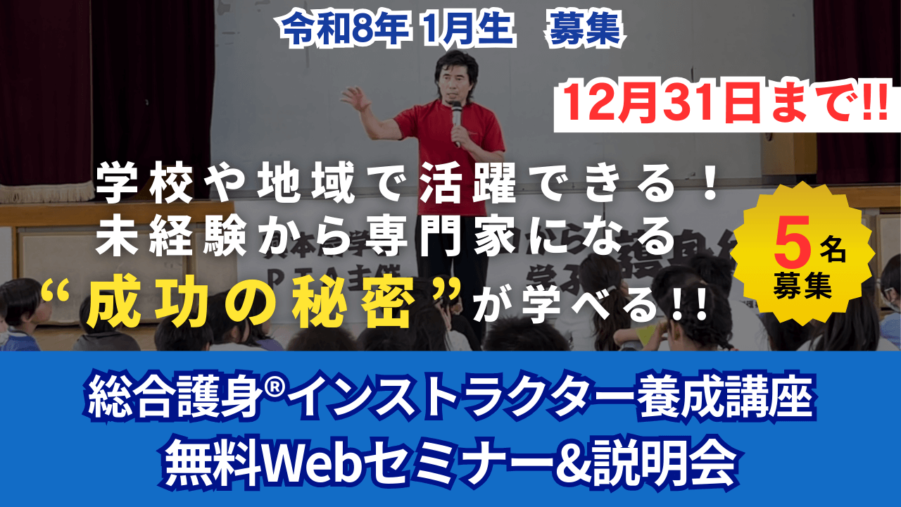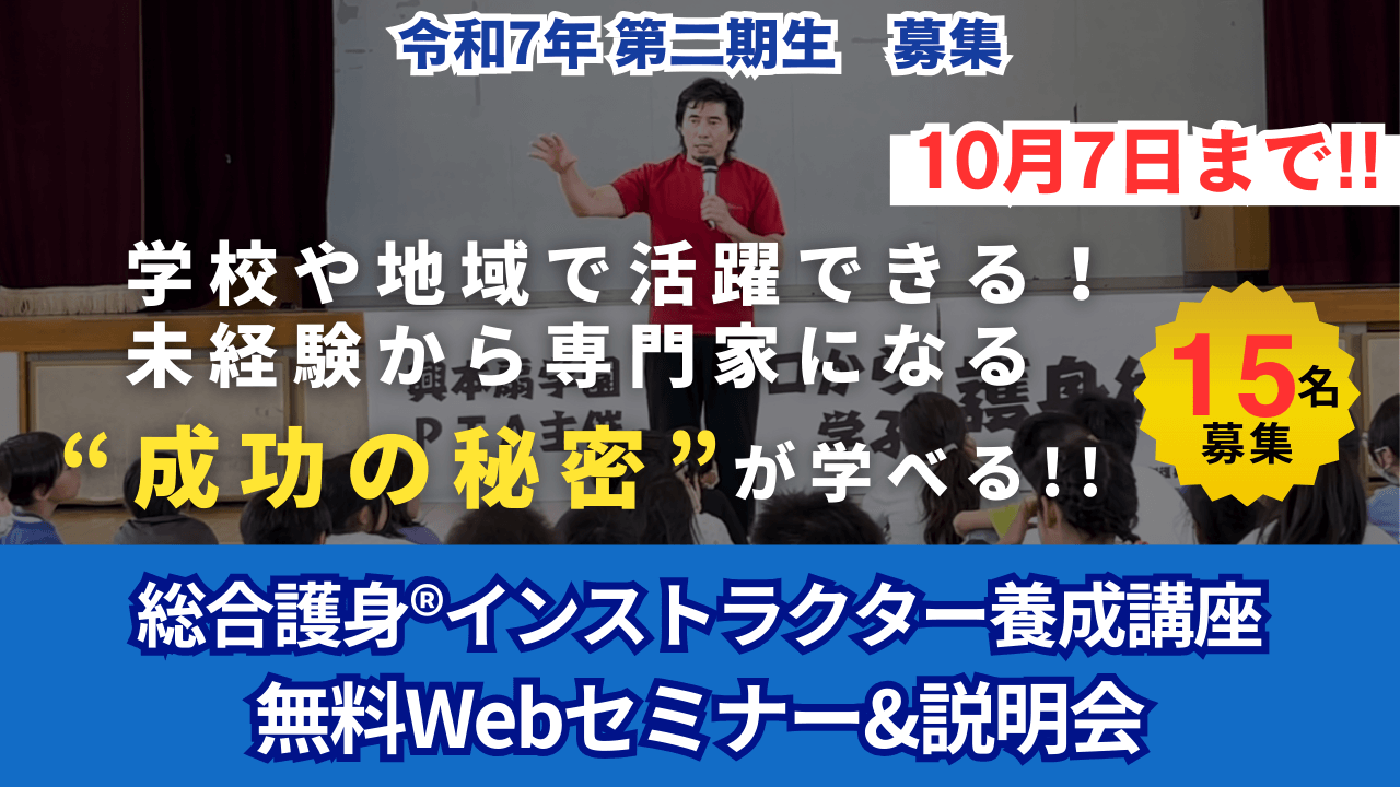 総合護身インストラクターは、この新しい考え方に 防犯知識 を加えて、社会に求められる専門家へ成長します。